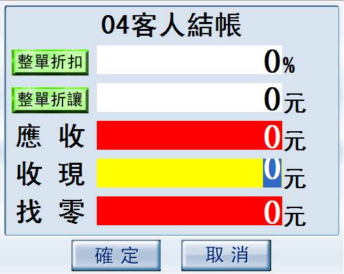 3-5、客人層選擇結束后,系統彈出以下對話框,因整個結帳過程使用的是禮券卡一次性付,故以下顯示中的應收、收現等各項目中均顯示為“0”,用戶可對其進行核對,無誤后按