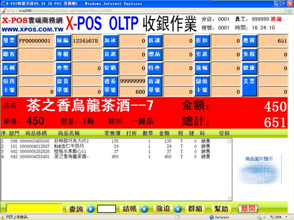 以上的操作是針對單筆商品的交易為例,接下來以超過1筆以上商品交易並且與現金各支付一部份為例。以總金額為651元的4筆商品為例,在01客戶層裡做禮券支付600元和現金支付51元結帳作業。具體操作如下: