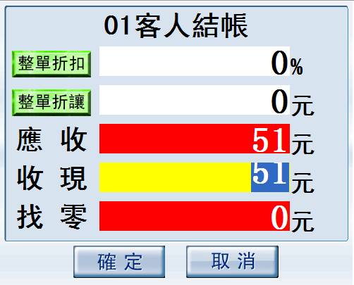 2-7-3、因為此單的結帳金額是651元,上一步的操作中已用禮券卡支付600元,結餘51元需顧客用現金支付。此時用戶只需點擊界面中