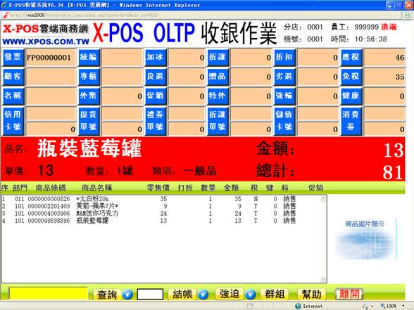 儲值卡也稱預付卡,通常為公司內部發行,就是客戶可以預先將現金金額儲入卡內后再以卡消費,類似銀行卡消費方式,儲值卡區分二種,一種為儲值金額時同時開出等額發票,使用儲值卡消費時該金額將不再開立發票,因此這類的儲值卡內充值之金額不得退款必須使用完畢,另一種為儲值時不開立發票,于消費時依照一般正常開立發票,這種儲值金額通常可以辦理餘額退款还卡作業。例:以X-POS界面中有4筆合計金額為81元的商品等待結帳,顧客出示一張儲值卡慾對此單結帳。