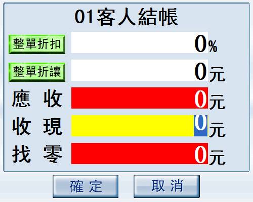輸入客戶層的快捷鍵即可進入結帳頁面,在此以系統默認的01客戶層為例結帳: