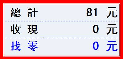 以上對話框所顯示:總計金額81元、應收0元、收現0元;發票列印顯示:儲值卡支付81元。儲值卡結帳操作完成!