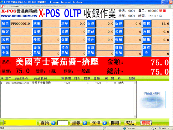 1-6、重新打開X-POS界面,再次輸入該商品。此時可見該商品的臨售價已變為100.0元。