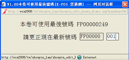 輸入更改的發票號碼一定要在該捲發票的有效範圍250個號碼之內,系統才可以通過。