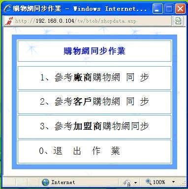 這裡分有3種情況: 1、參考廠商購物網同步 2、參考客戶購物網同步 3、參考加盟商購物網同步 這里先講解“參考加盟商購物網同步” ,在彈出的選項中選擇:3、參考加盟商購物網同步