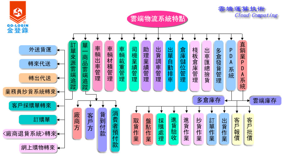 2.单一商品云端追踪:自客户的采购单、购物车做B2B、B2C转来的订单,每一个单品都可以藉此物流追踪系统查询动向,完全支援即时得知单品之 |